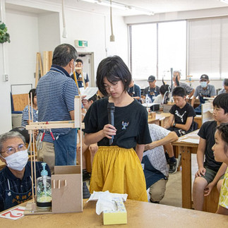 令和7年9月6日(土) 創造クラスは、5月からアイデアの検討、設計、夏休みの特別教室にも参加して、作品作りを進めてきた「半田市少年少女発明クラブの創意くふう展作品発表会」を開催しました。当日は、保護者の方 にもご参加いただきました。